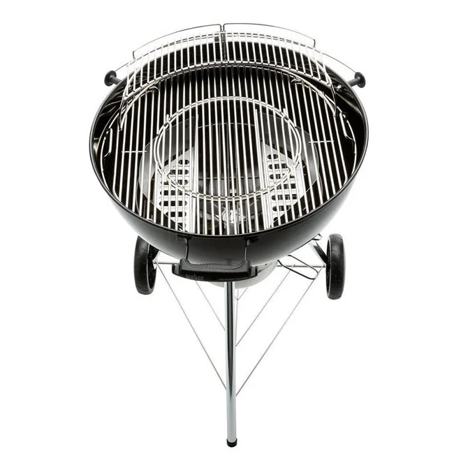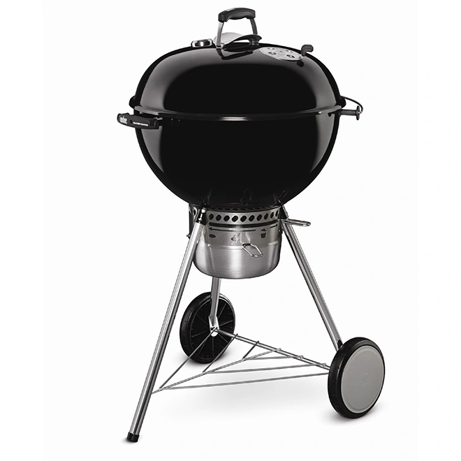 Préparez de délicieux repas à l’aide de ce barbecue au charbon Master Touch de marque Weber. Il possède une grande coupelle amovible en aluminium ainsi que deux supports pour le charbon Char-Basket. Il possède également un couvercle avec thermomètre intégré et un système de nettoyage One-Touch pour un entretien facile. Doté de son système Gourmet BBQ, ce produit léger possède une panoplie d’inserts pour des accessoires de cuisine comme une pierre à pizza, un wok et une plaque à frire pour que vous puissiez utiliser votre gril et cuisiner des repas qui sortent de l’ordinaire. Jumelé à un réchaud, ce modèle noir possède une surface de cuisson totale de 443 pouces carrés. Le gril à charbon de bois Weber Master-Touch propose un système de barbecue gastronomique qui peut être utilisé à la maison ou à l’extérieurLa grille de cuisson articulée en acier plaqué avec grille de maintien au chaud offre plus d’espace pour préparer les alimentsDeux poignées en nylon renforcées de verre avec crochets à outils permettent de garder vos accessoires de grillade à portée de mainLa poignée du couvercle avec écran thermique protège votre main des brûluresJauge de température intégrée qui permet un meilleur contrôleLe collecteur de cendres amovible empêche les cendres de s’envolerLes roues résistantes, moulées en caoutchouc, sont conçues pour fonctionner dans diverses conditions météorologiquesComprend deux supports de charbon de bois Char-Basket qui se déplacent facilement pour une cuisson directe ou indirecteGarantie limitée de 10 ans sur le bol et le couvercle
