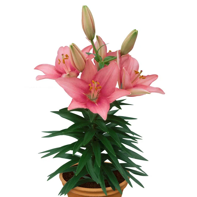 Lys orientaux de différentes couleurs. En pot de 20 cm.